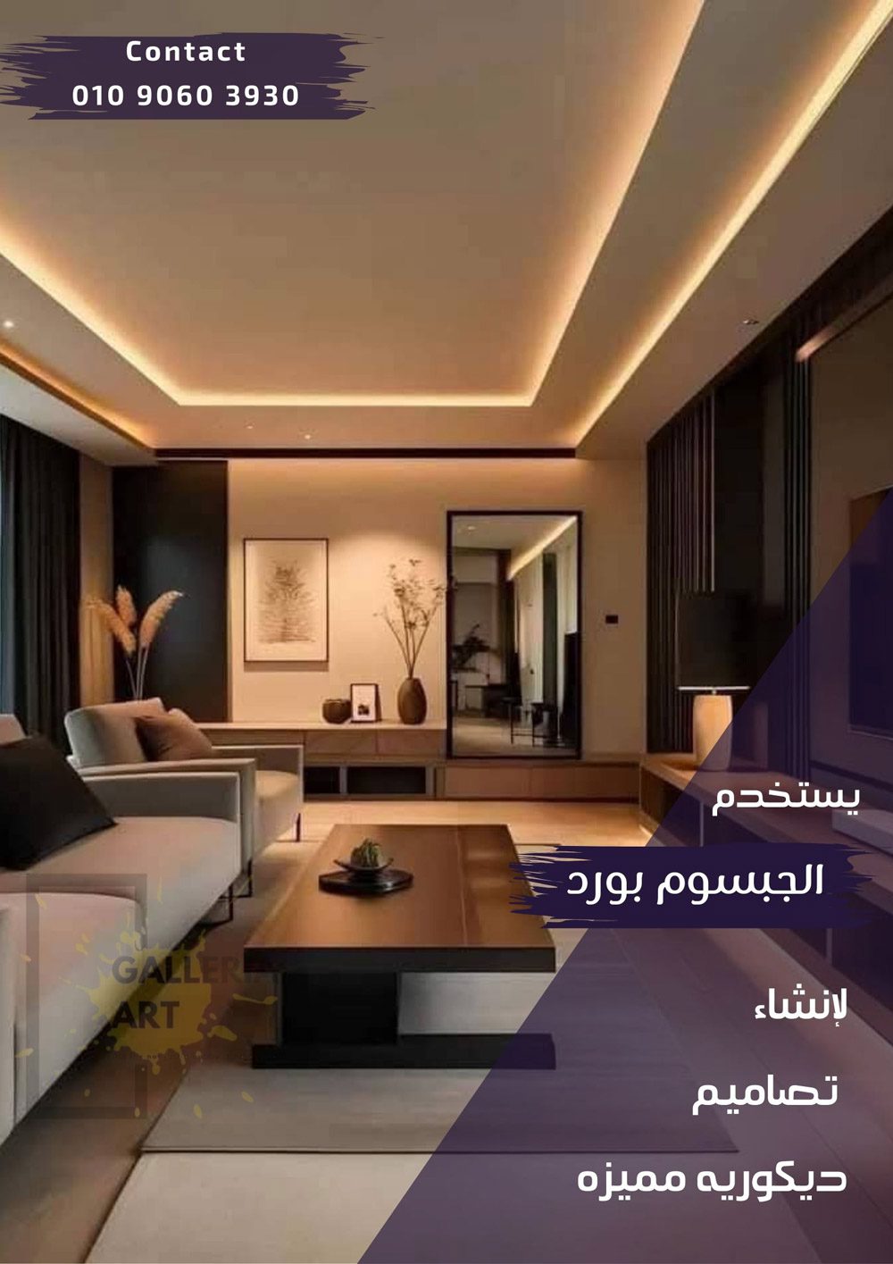 جبس بورد اسقف بسيط فلات بلمسة مودرن وإضاءة هادئة