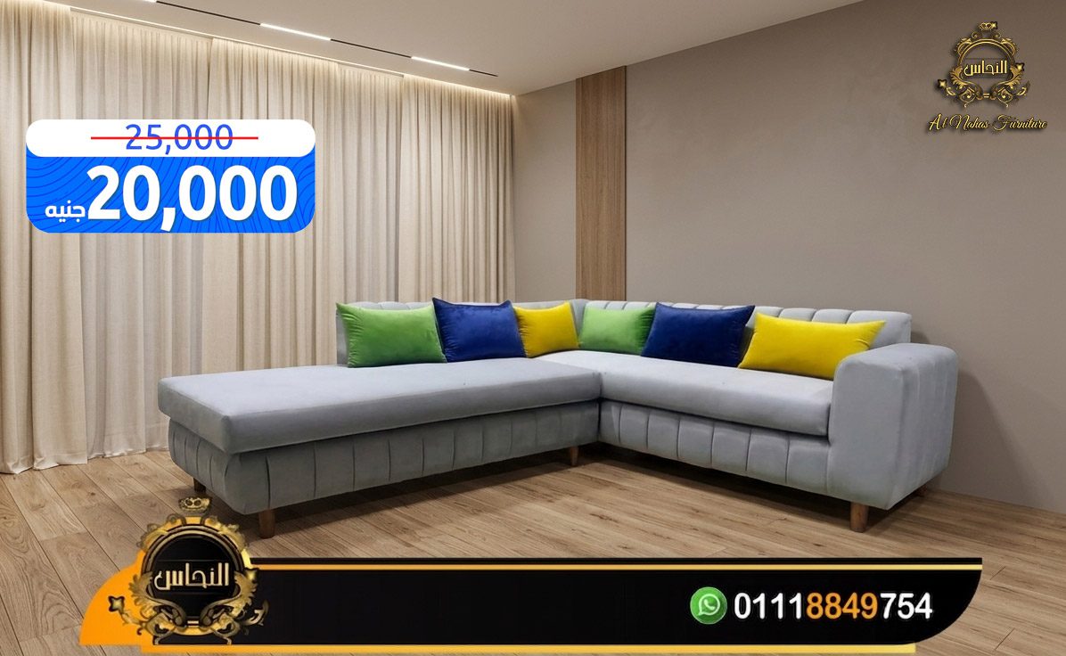 ركنة مودرن حرف L بتكون مصممة بحيث تدعم الظهر وتوفر جلسة مريحة لفترات طويلة، سواء بتتفرج على التلفزيون أو قاعد مع العيلة أو حتى بتشتغل من البيت.
